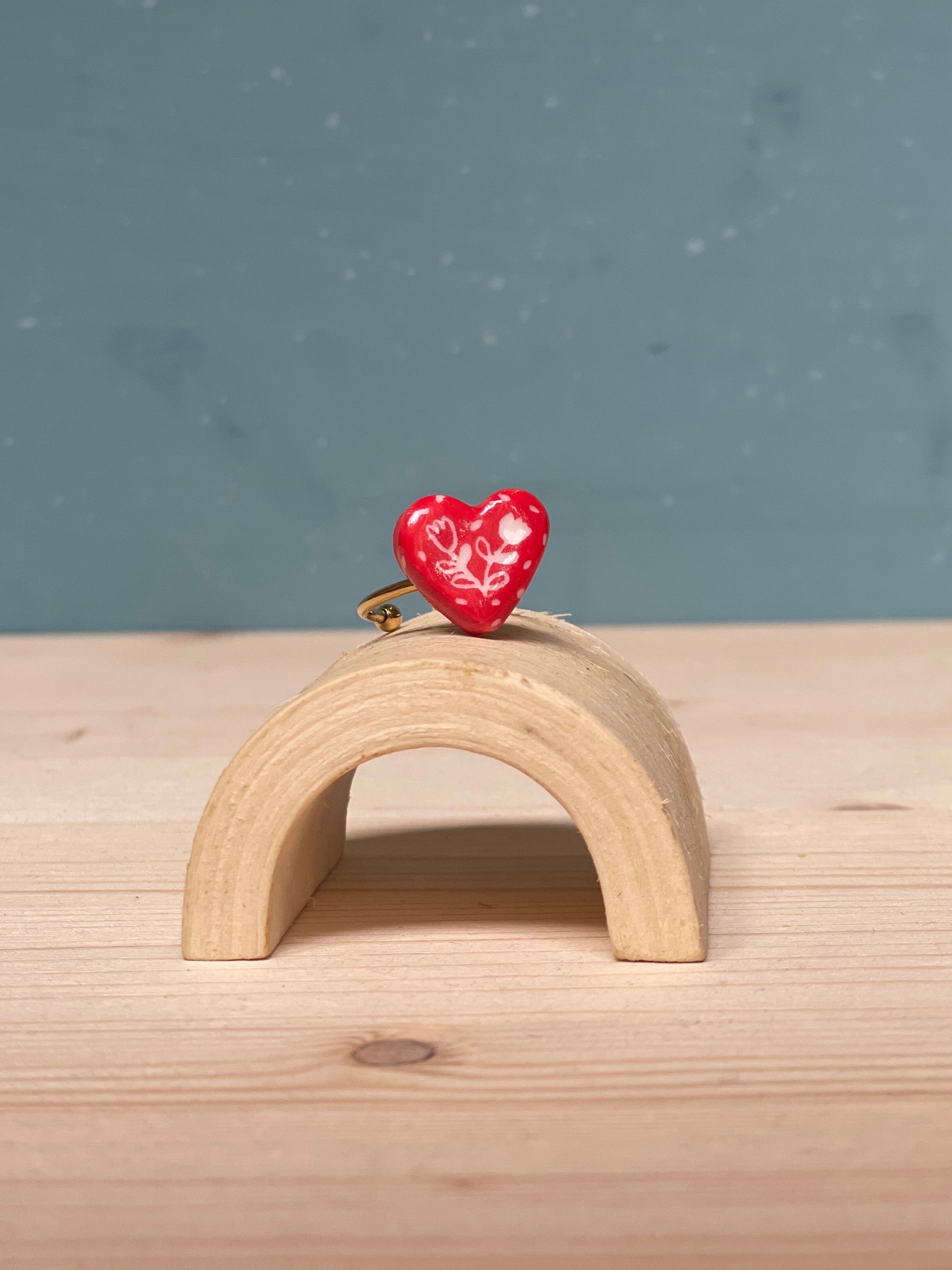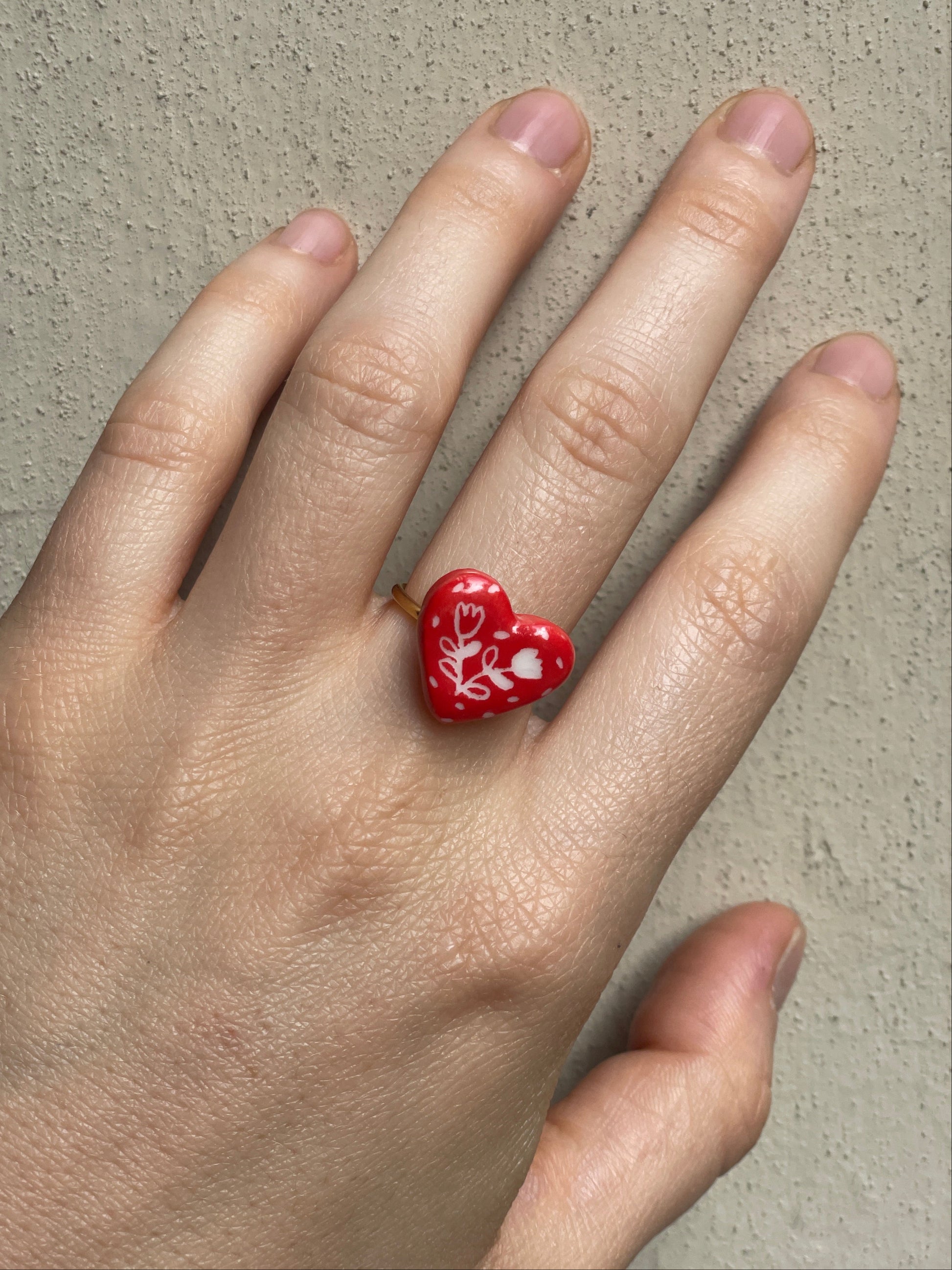 Anello in porcellana decorato a mano con supporto in acciaio inossidabile