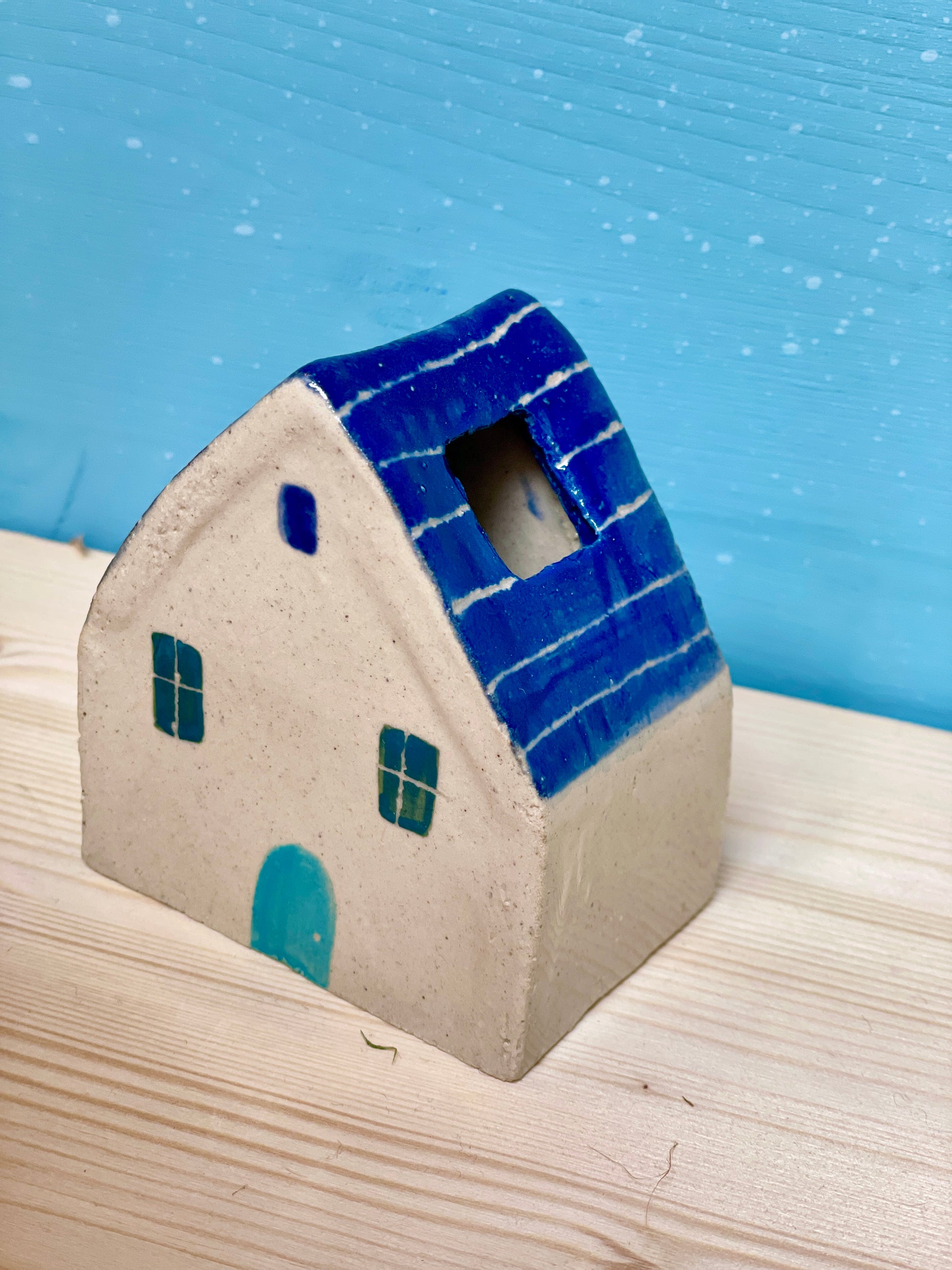 Vasetto portafiori a forma di casetta realizzato a decorato a mano