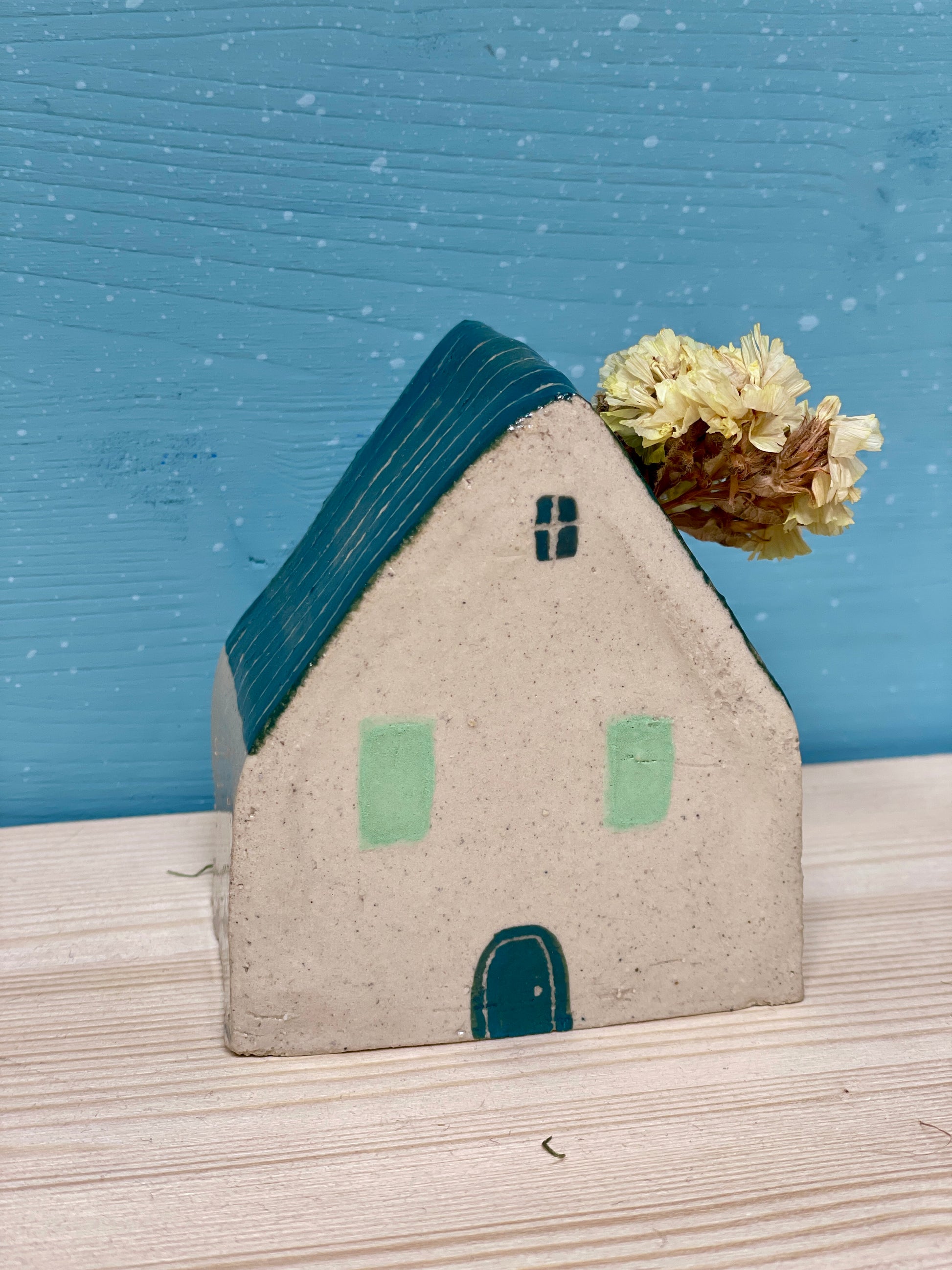 Vasetto portafiori a forma di casetta realizzato a decorato a mano