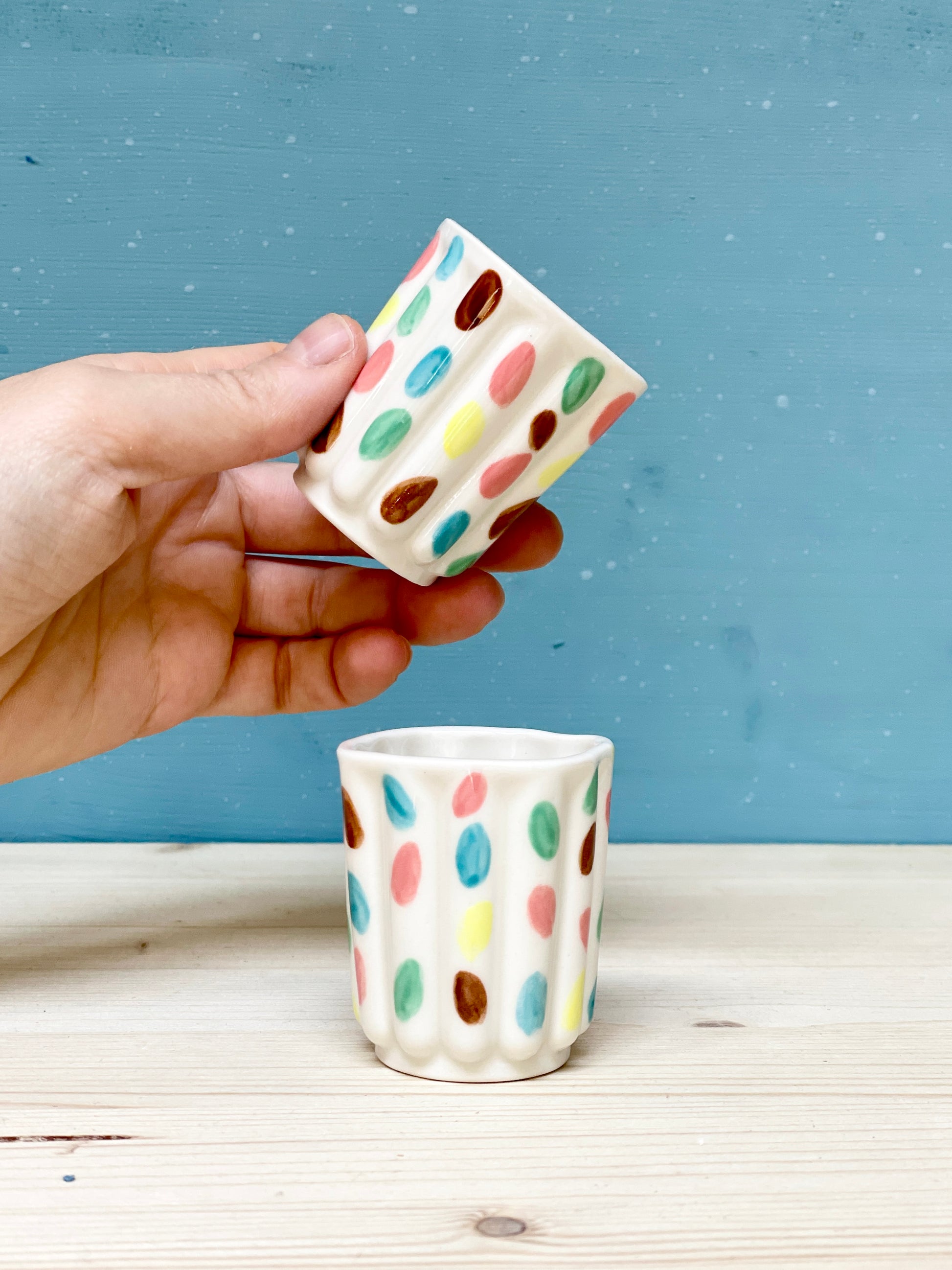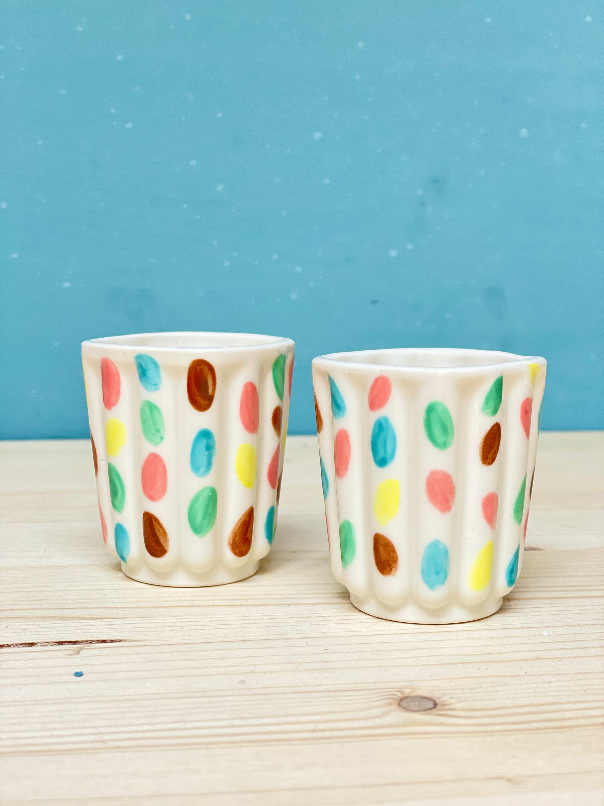 Coppia di tazzine in porcellana realizzate e decorate a mano