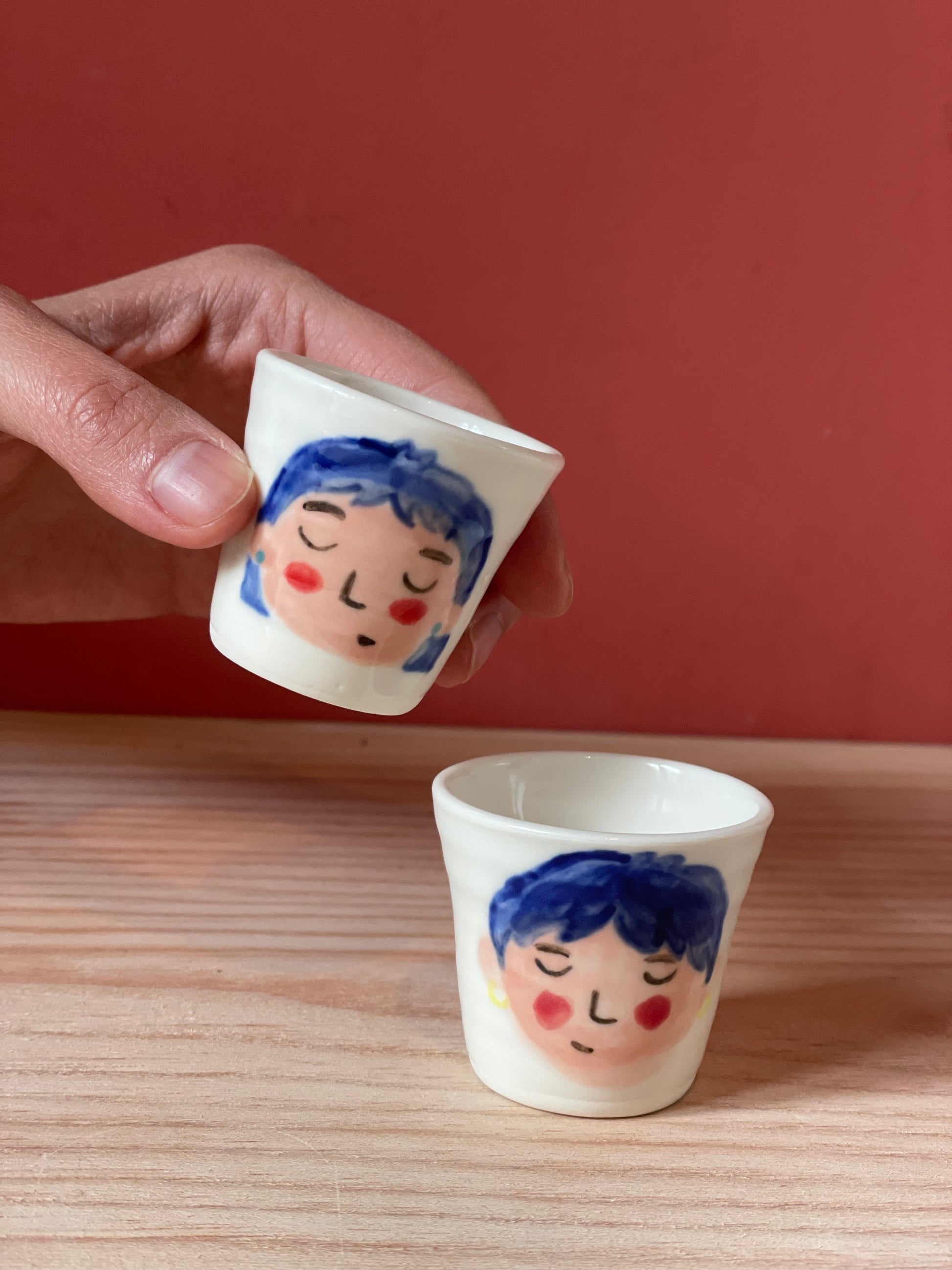 Coppia di tazzine in porcellana realizzate e decorate a mano.