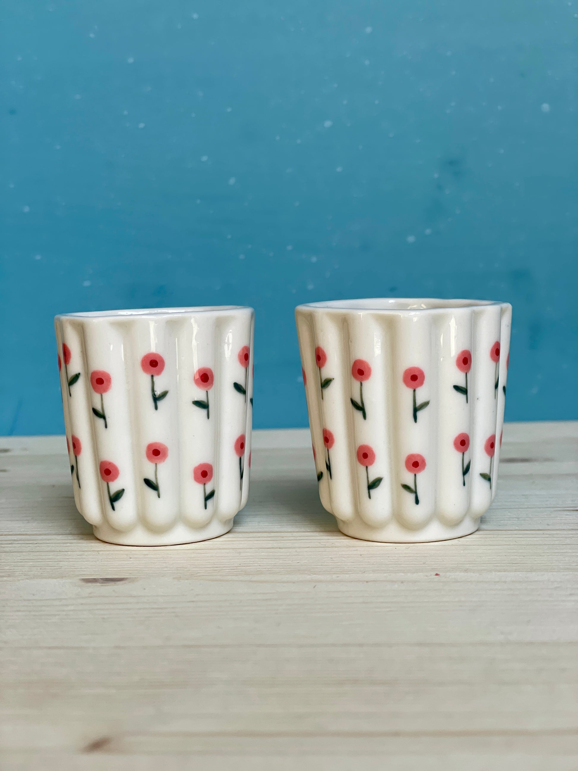Coppia di tazzine in porcellana realizzate e decorate a mano