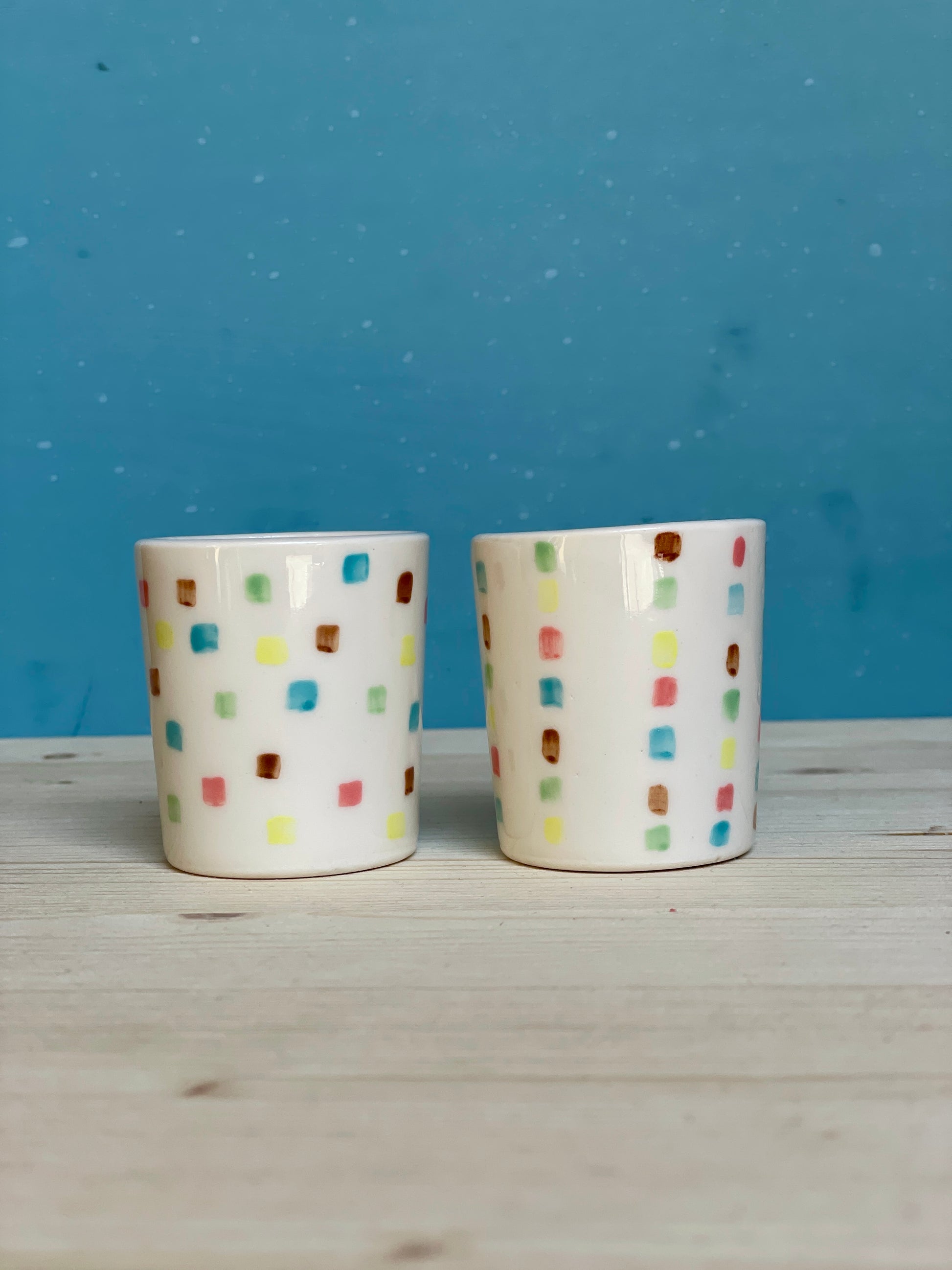 Coppia di tazzine in porcellana realizzate e decorate a mano