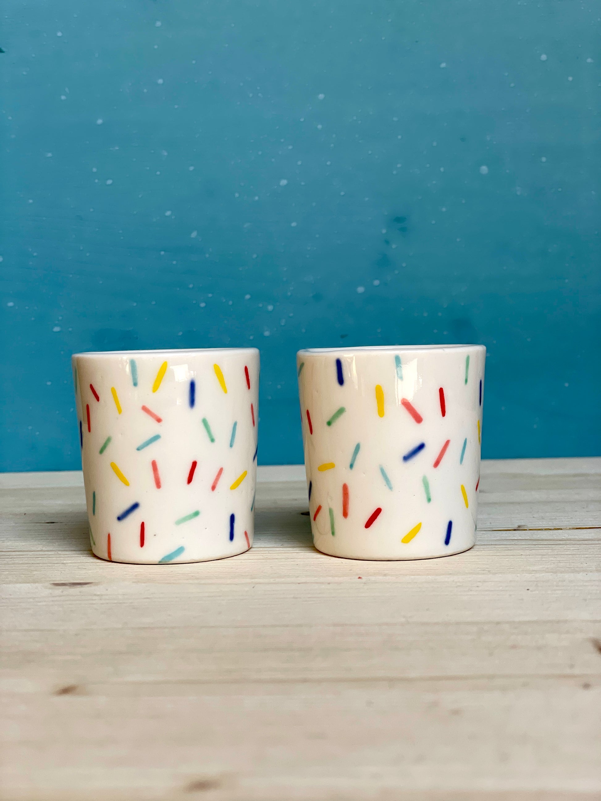 Coppia di tazzine in porcellana realizzate e decorate a mano