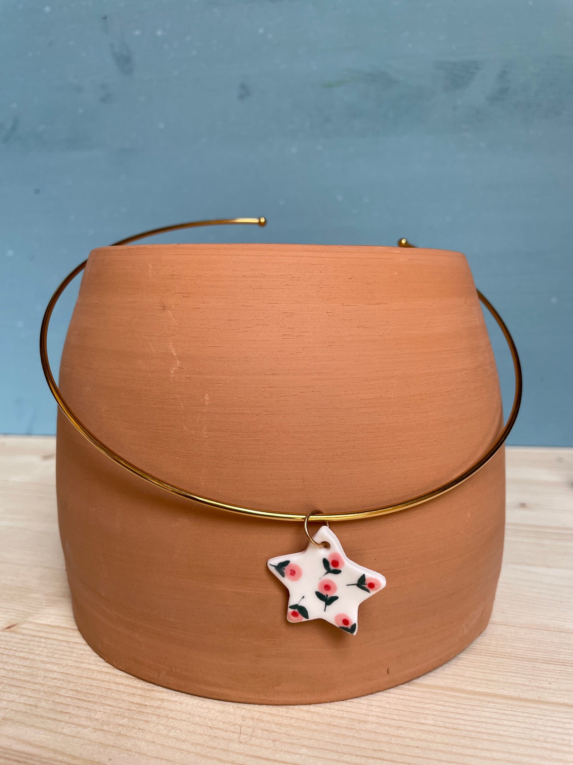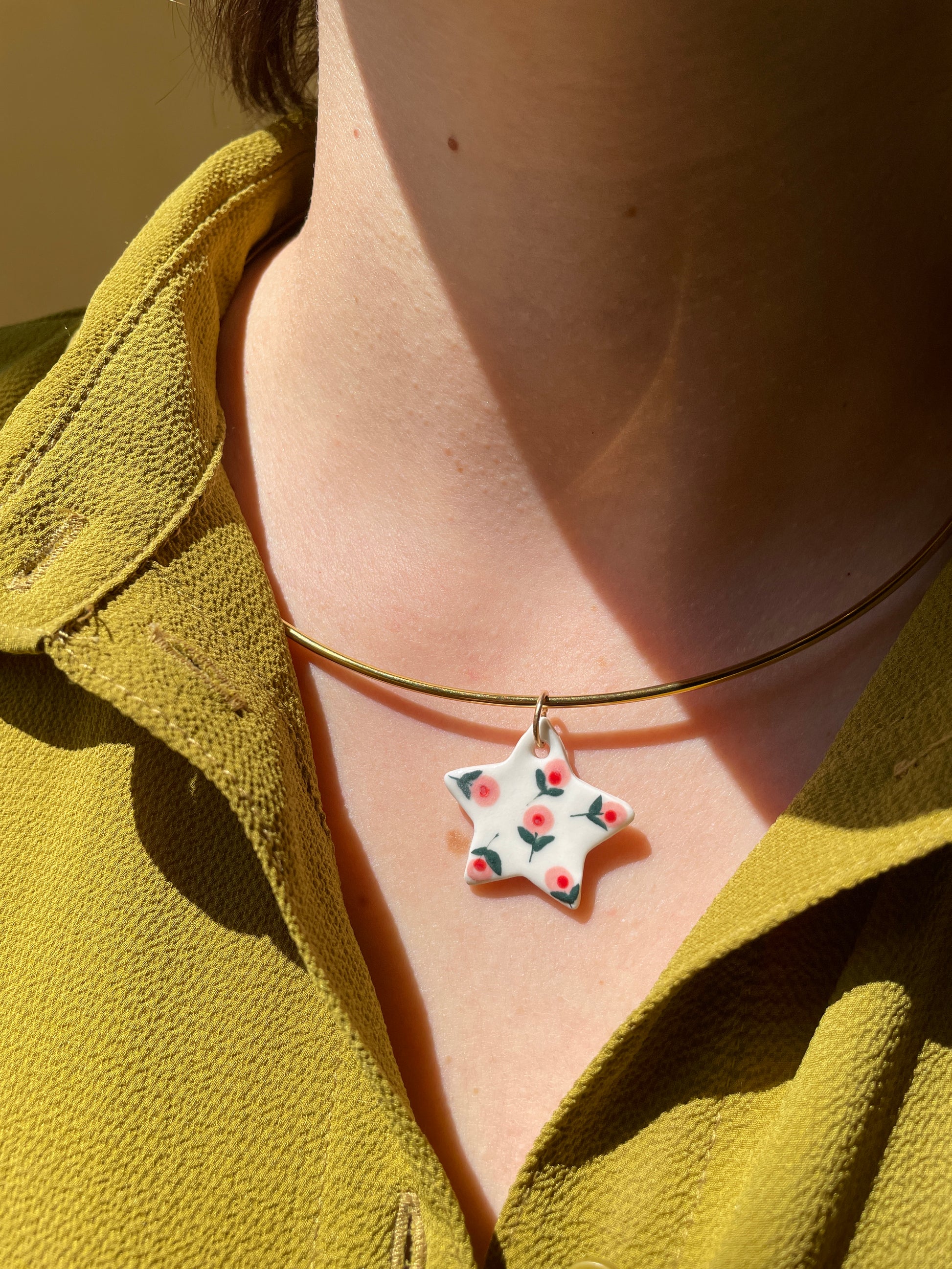 Girocollo rigido regolabile in acciaio inossidabile con ciondolo in porcellana decorato a mano