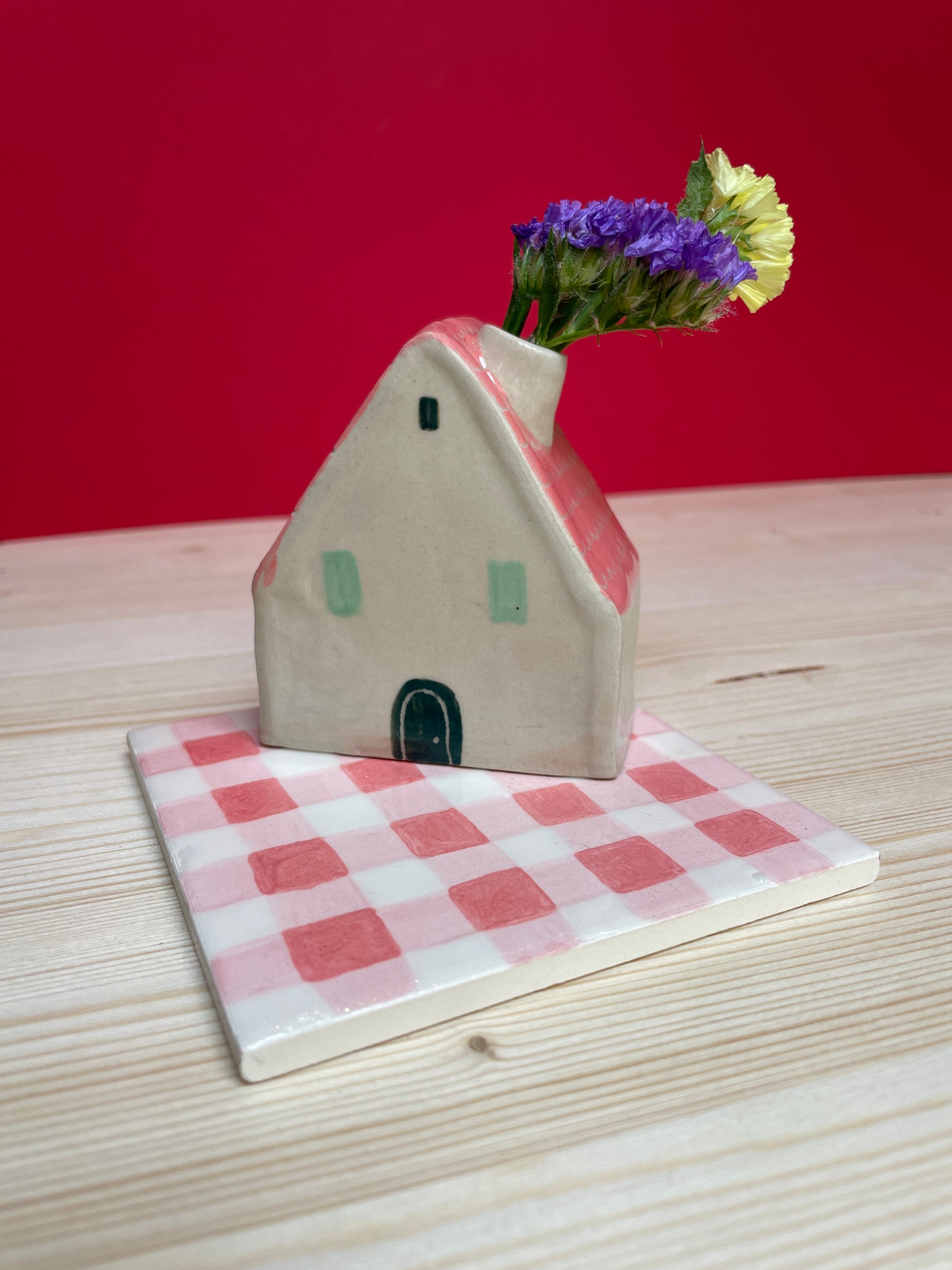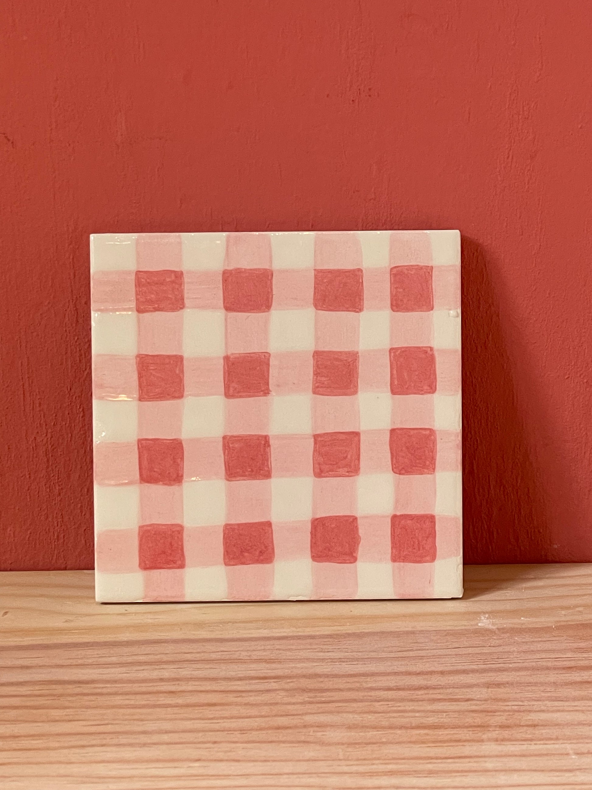 Piastrella decorata a mano simil tovaglia, utilizzabile anche come sottotazza