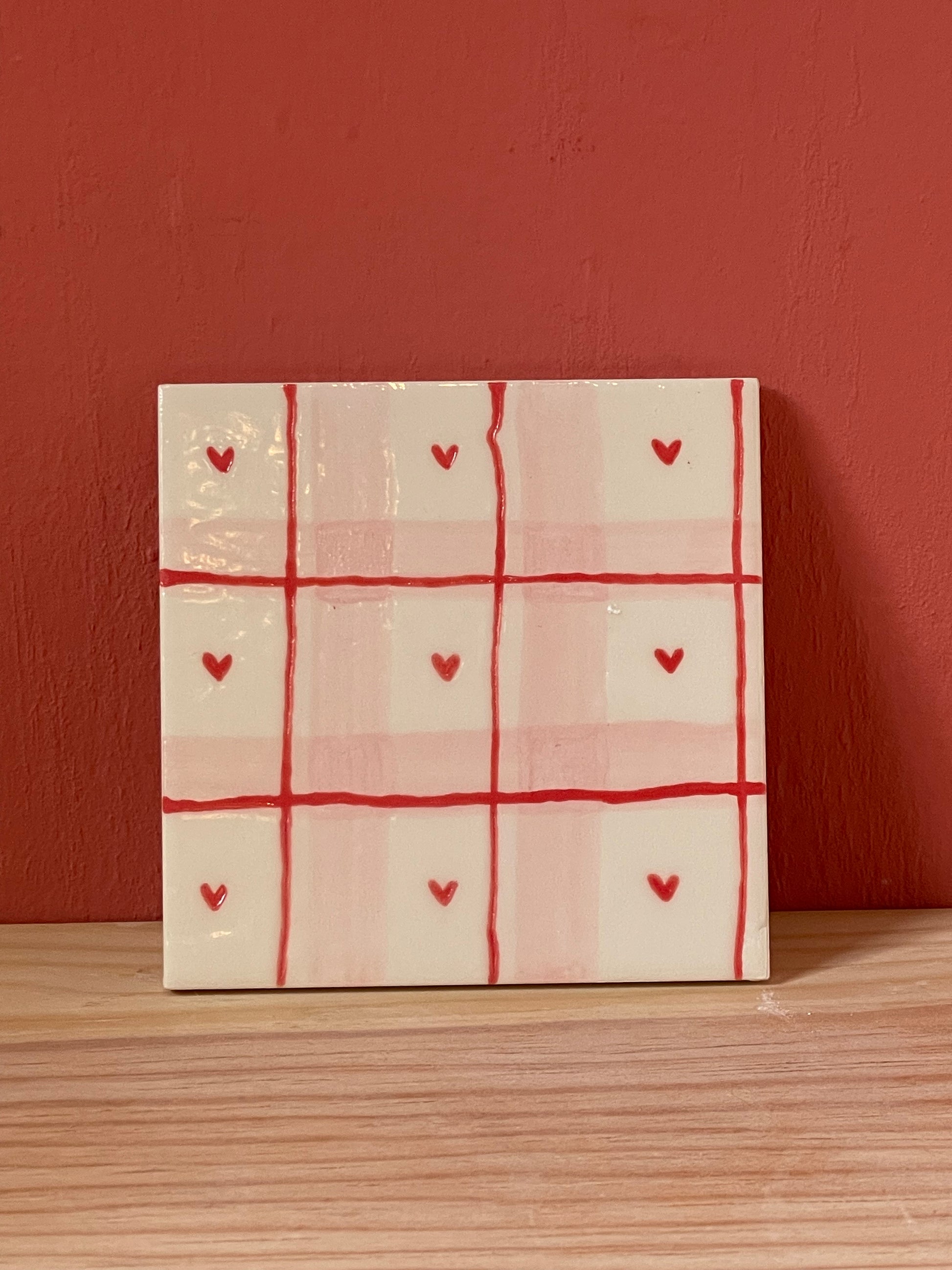 Piastrella decorata a mano simil tovaglia, utilizzabile anche come sottotazza
