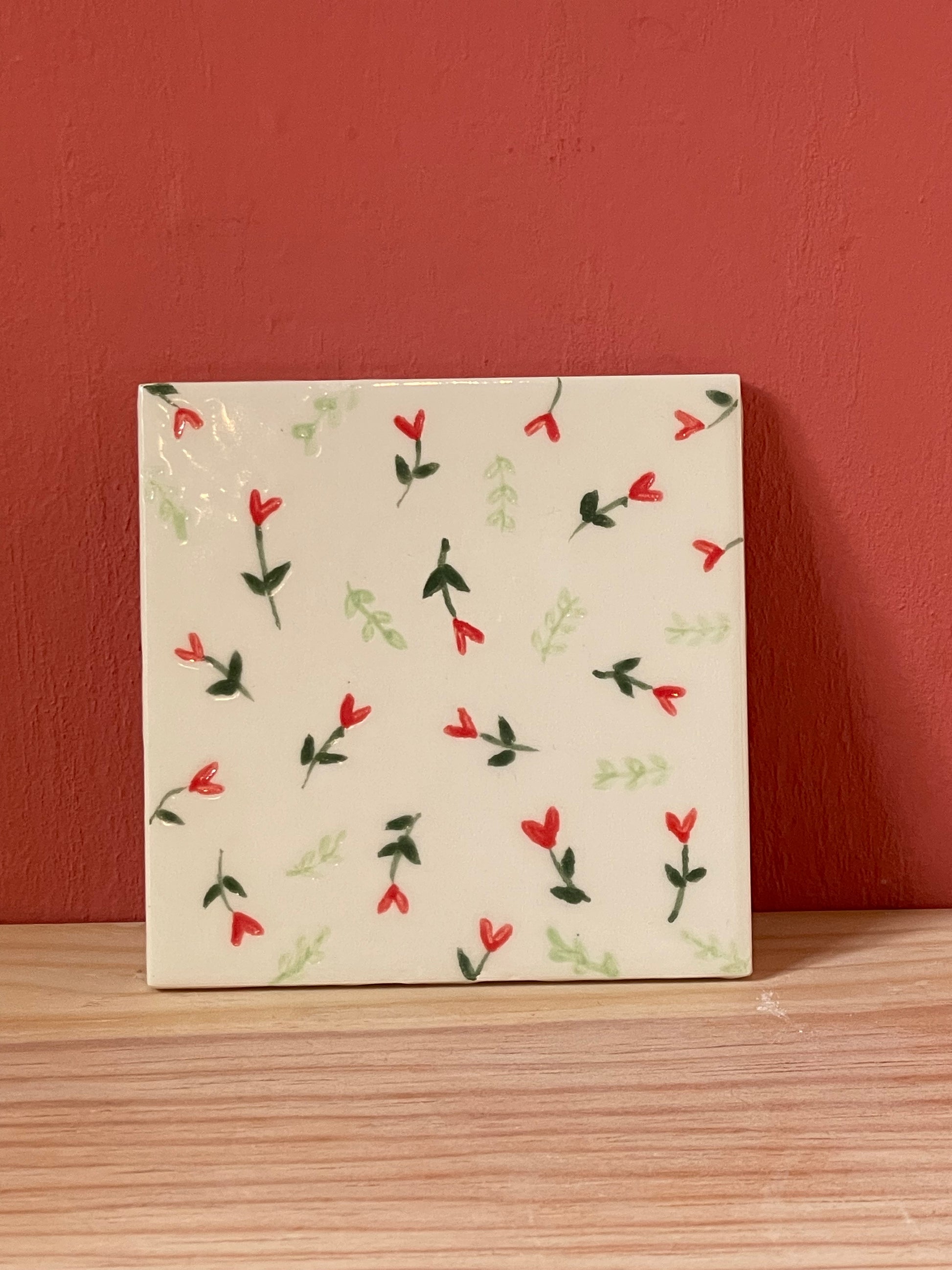 Piastrella decorata a mano, utilizzabile anche come sottotazza