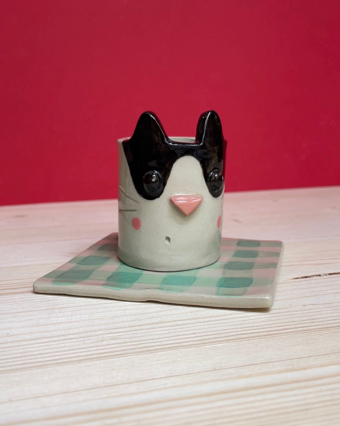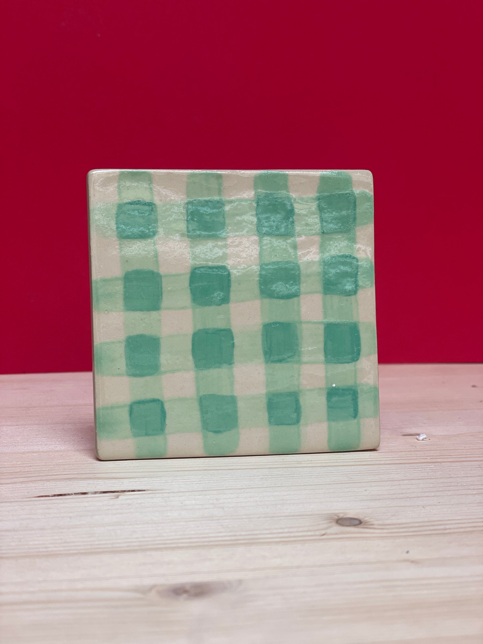 Piastrella realizzata e decorata a mano simil tovaglia, utilizzabile anche come sottotazza
