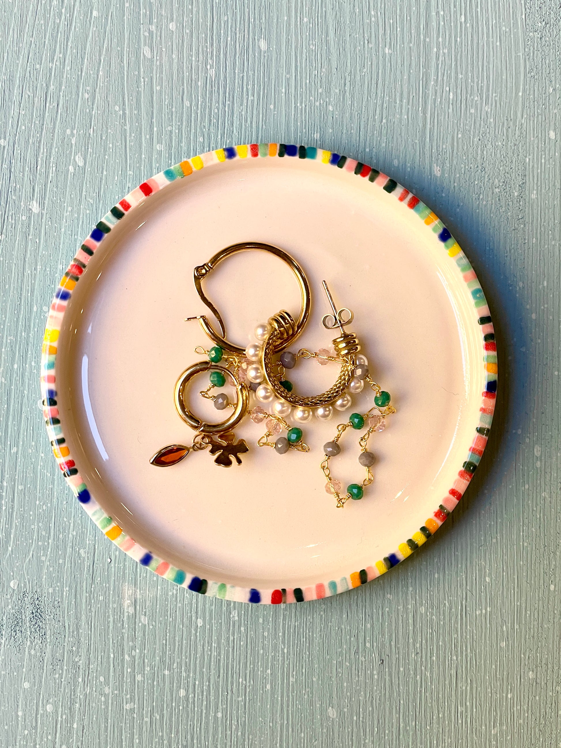 Piattino portagioie in porcellana realizzato e decorato a mano