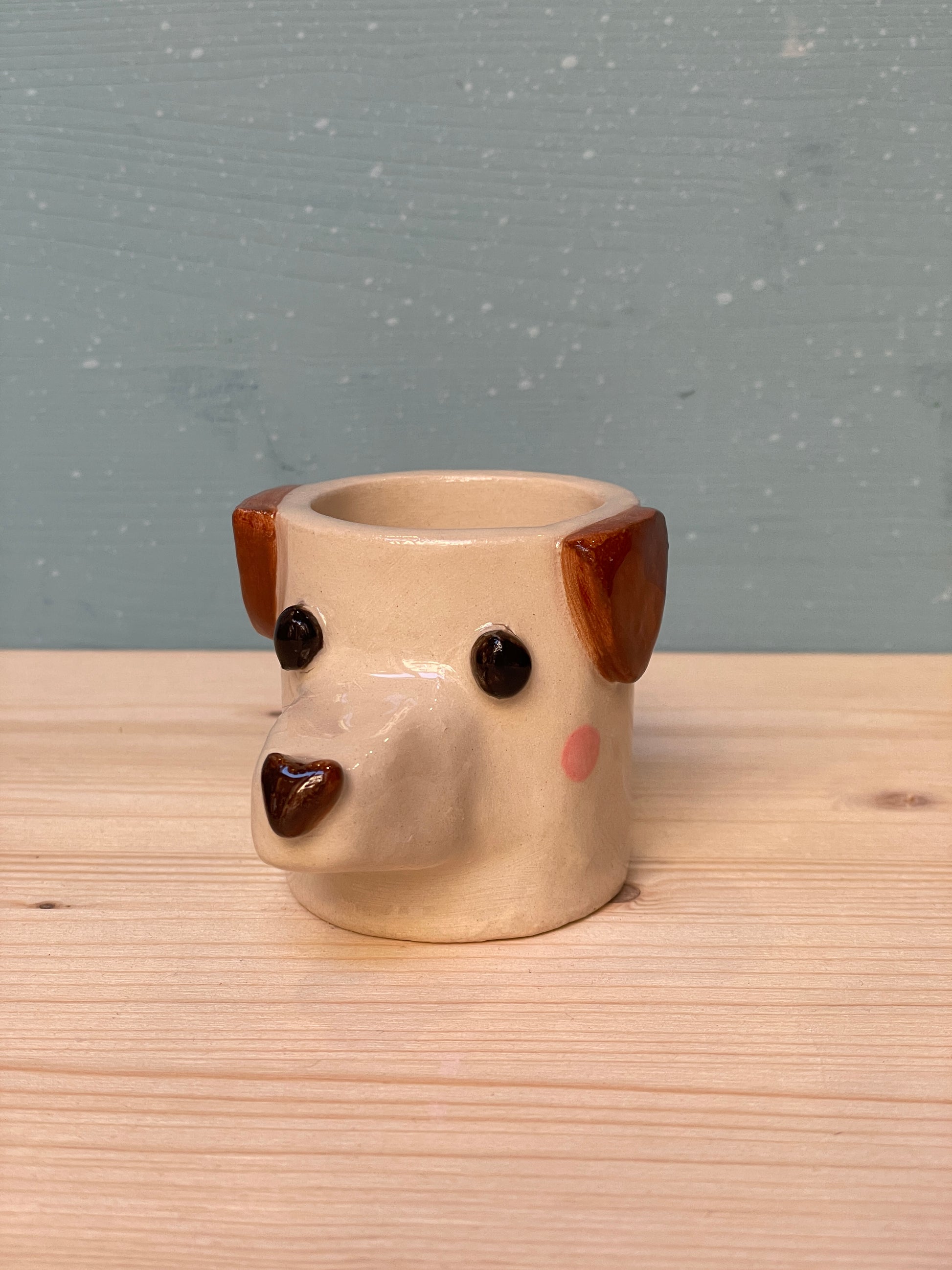 Tazzina da caffè a forma di cagnolino in grès realizzato e decorato a mano