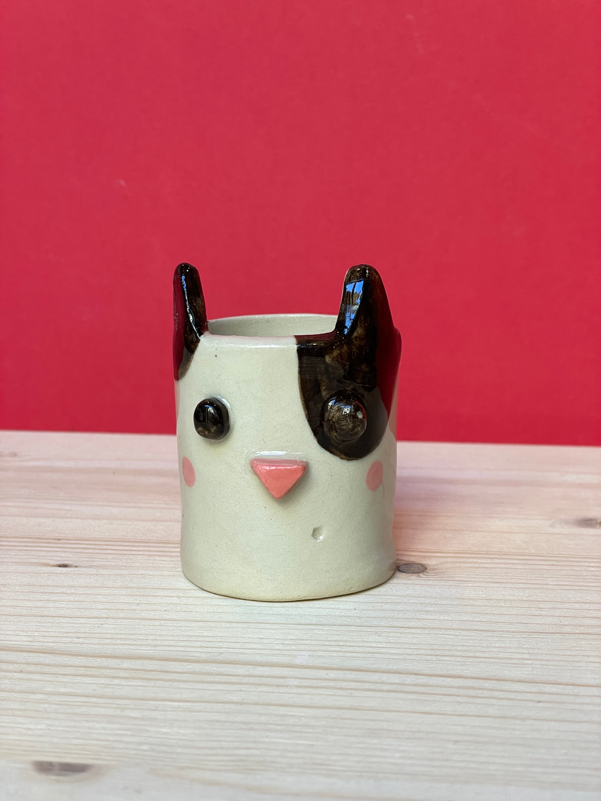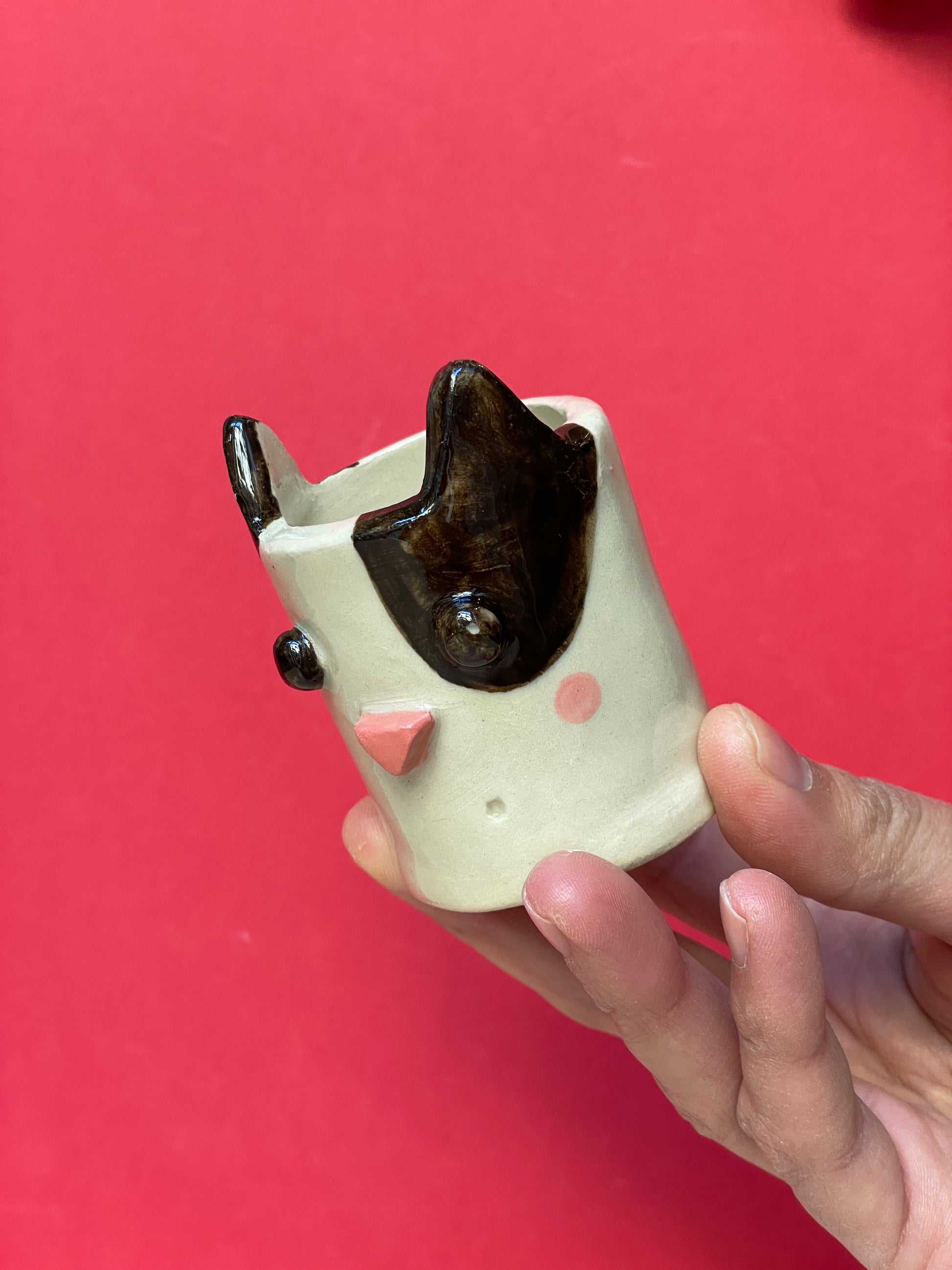 Tazzina da caffè a forma di gattino in grès realizzato e decorato a mano