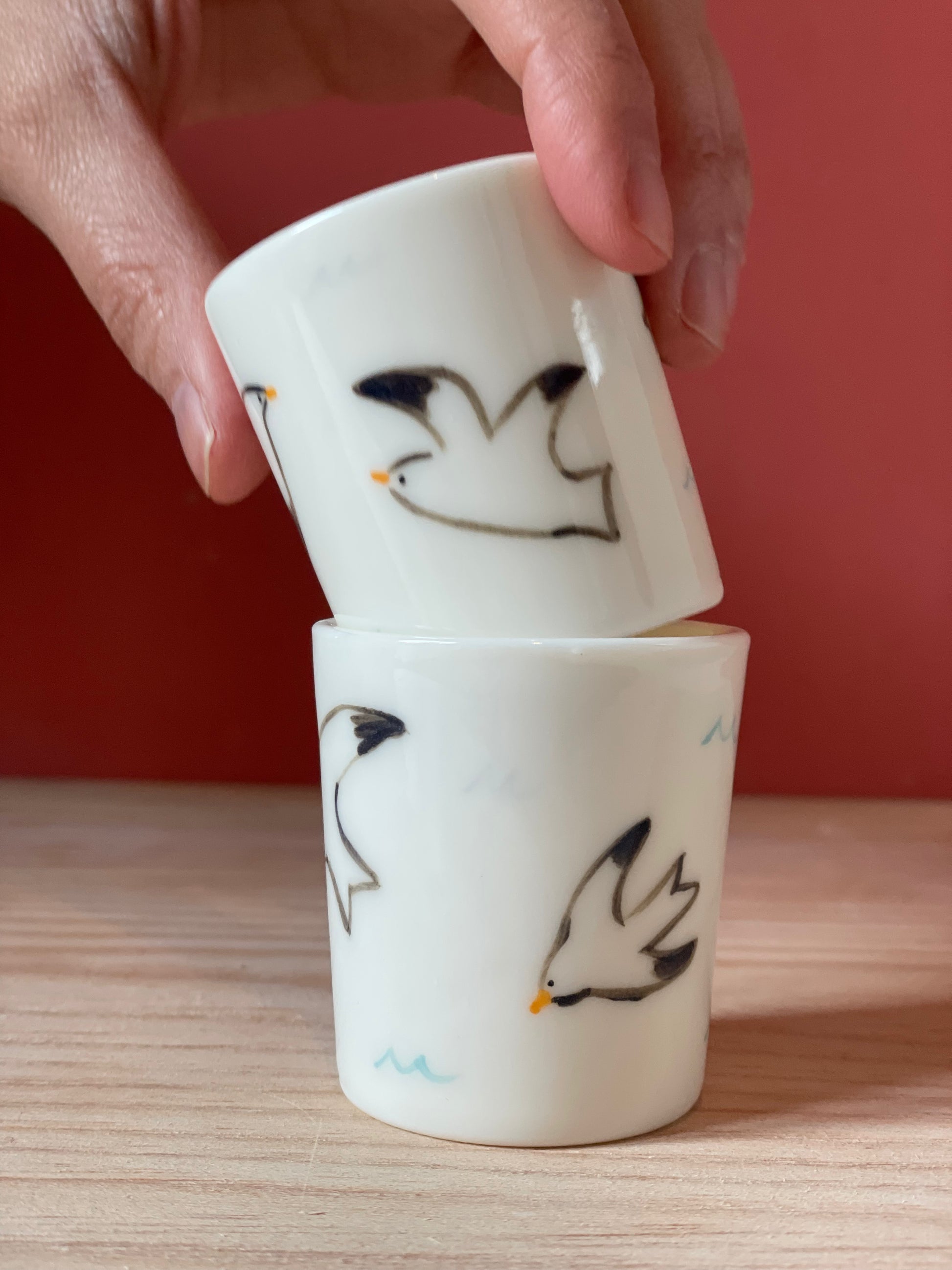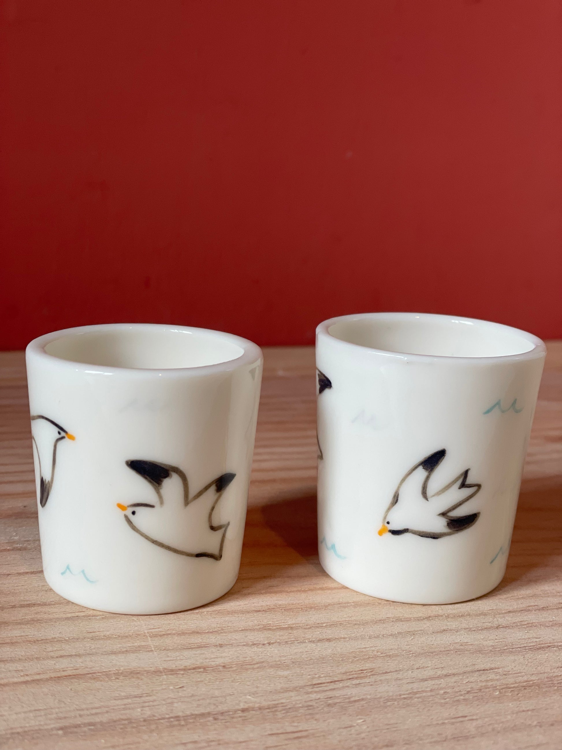 Coppia di tazzine in porcellana realizzate e decorate a mano.