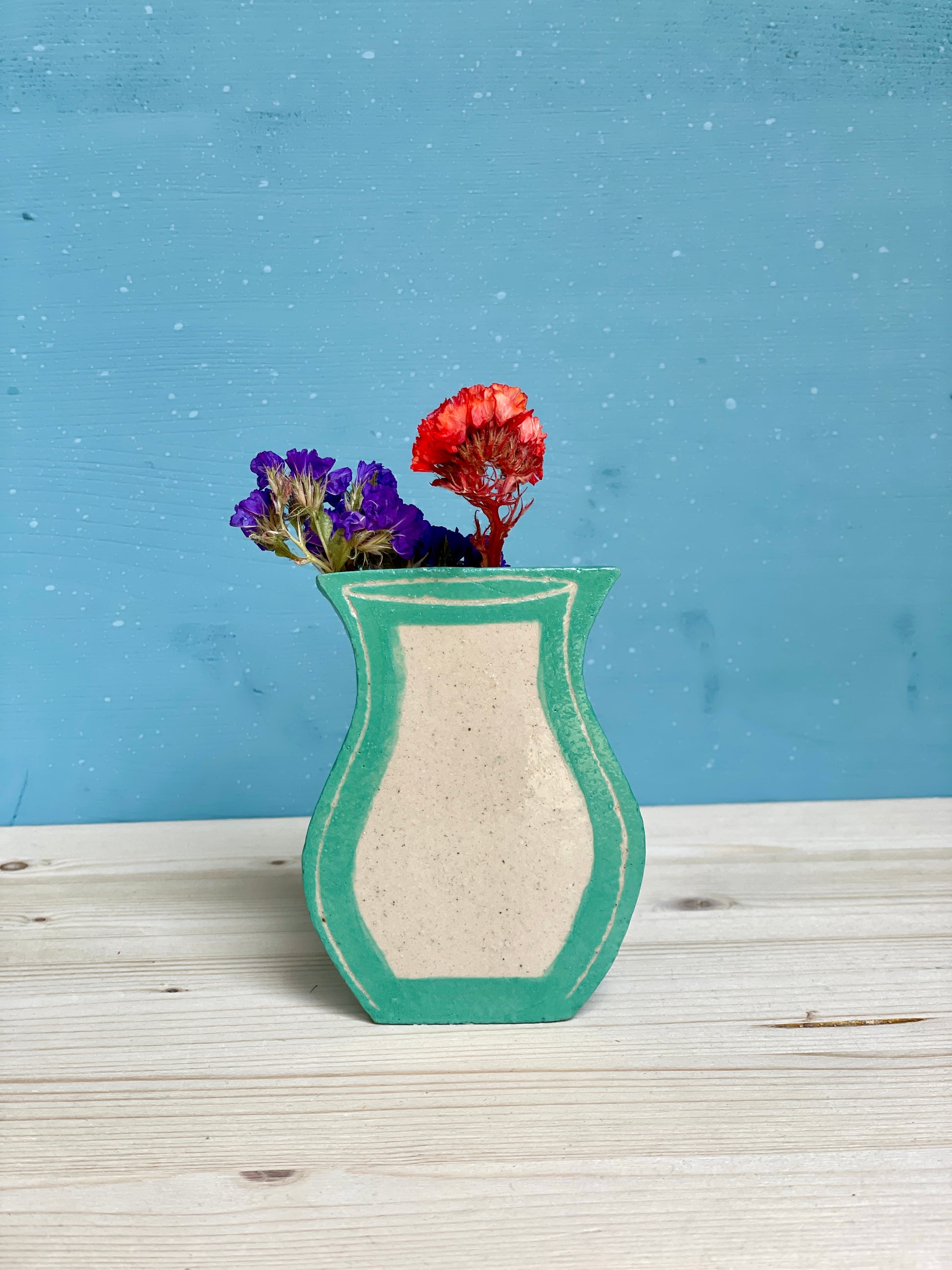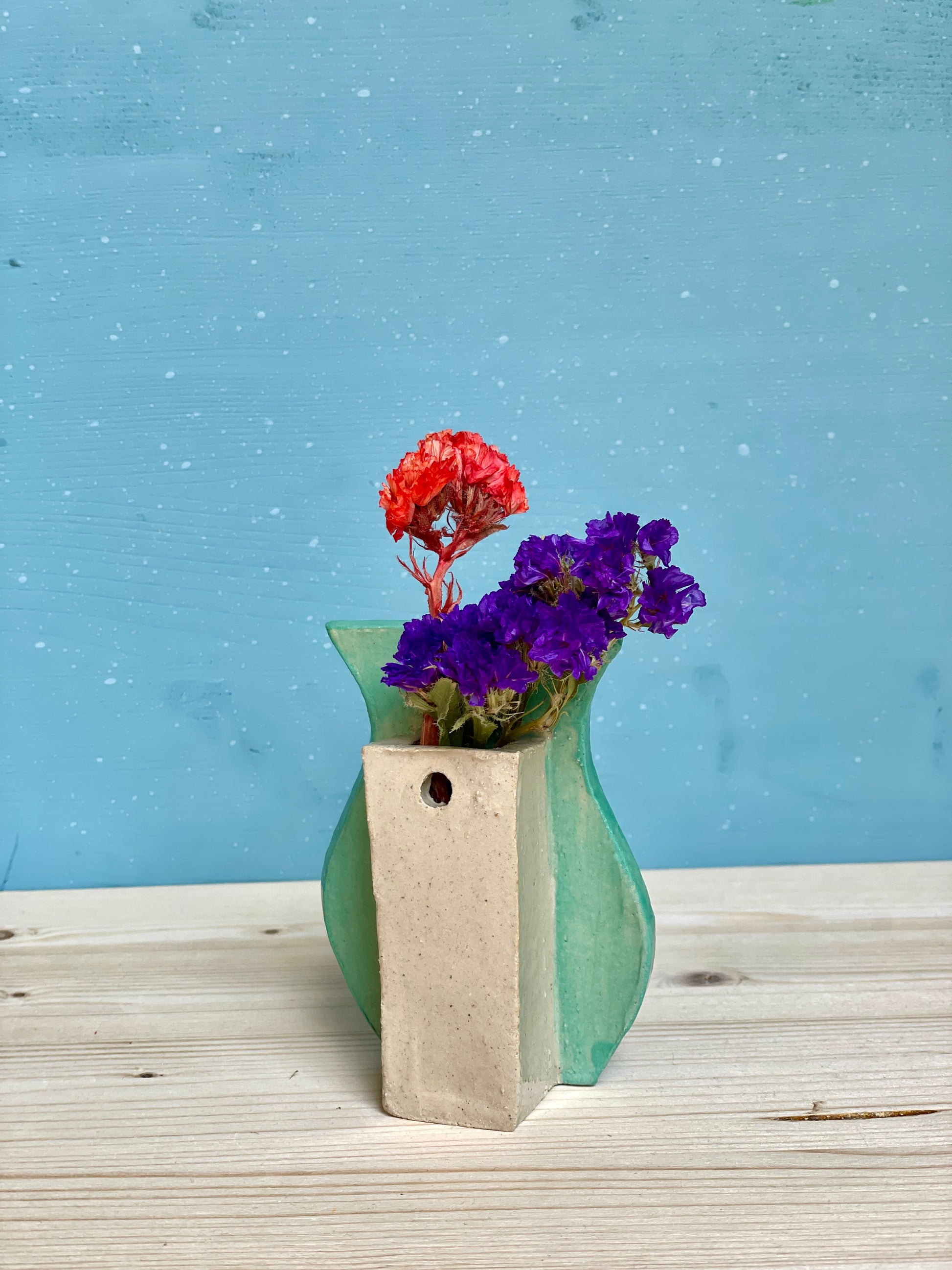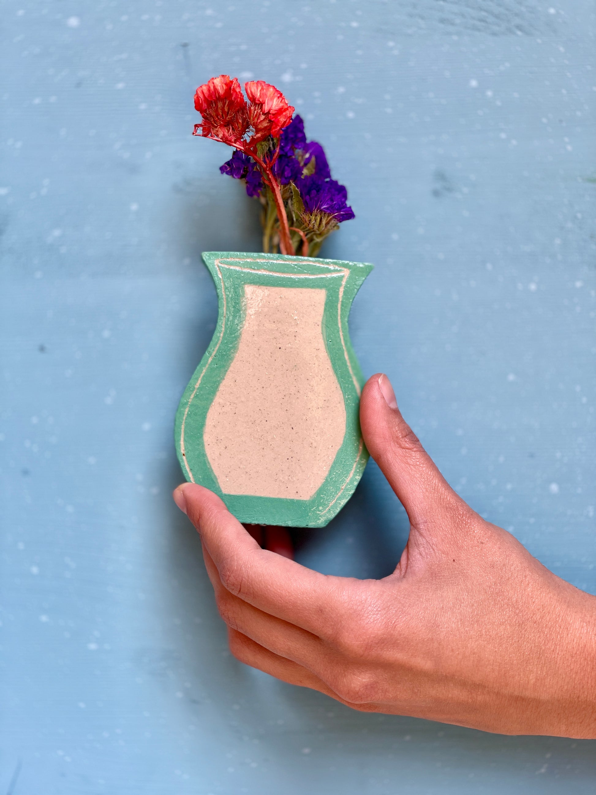 Vasetto portafiori in grès puntinato da scrivania o appendibile al muro